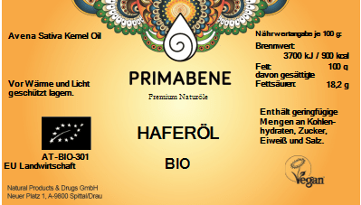 The yellow-orange PRIMABENE® Oat Oil BIO is gently extracted using CO2 extraction from the kernels or seeds and has a nutty oat aroma. The delicious oil enhances both warm and cold dishes and, due to its valuable ingredients, complements a healthy diet.