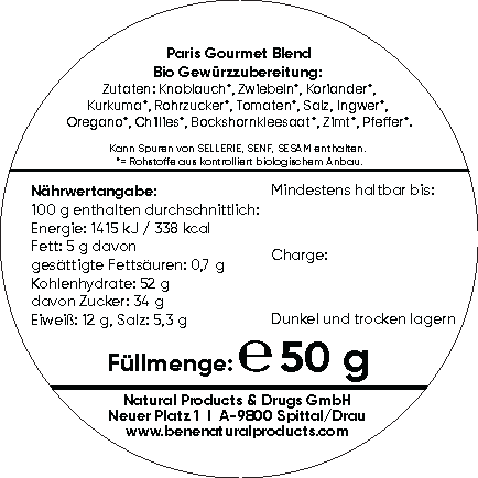 PRIMABENE® Paris Gourmet Blend Organic, also known as Café de Paris seasoning, is the refined composition of Provençal herbs, paprika, and exotic spices. Immerse yourself in the irresistible taste of French haute cuisine and bring the unmistakable elegance of Parisian culinary art directly to your plate. Perfect for steaks, sauces, and vegetables.