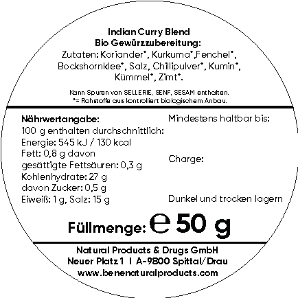 Bring the vibrant colors and intense aromas of Indian dishes straight into your kitchen. The blend of coriander, turmeric, fennel, fenugreek, salt, chili powder, cumin, caraway and cinnamon unites the diversity of Indian flavors in a single seasoning. Perfect for creamy curries, savory stir‑fries or exotic dips – our Indian Curry Blend Organic gives your dishes an irresistible touch of warmth and exoticism.