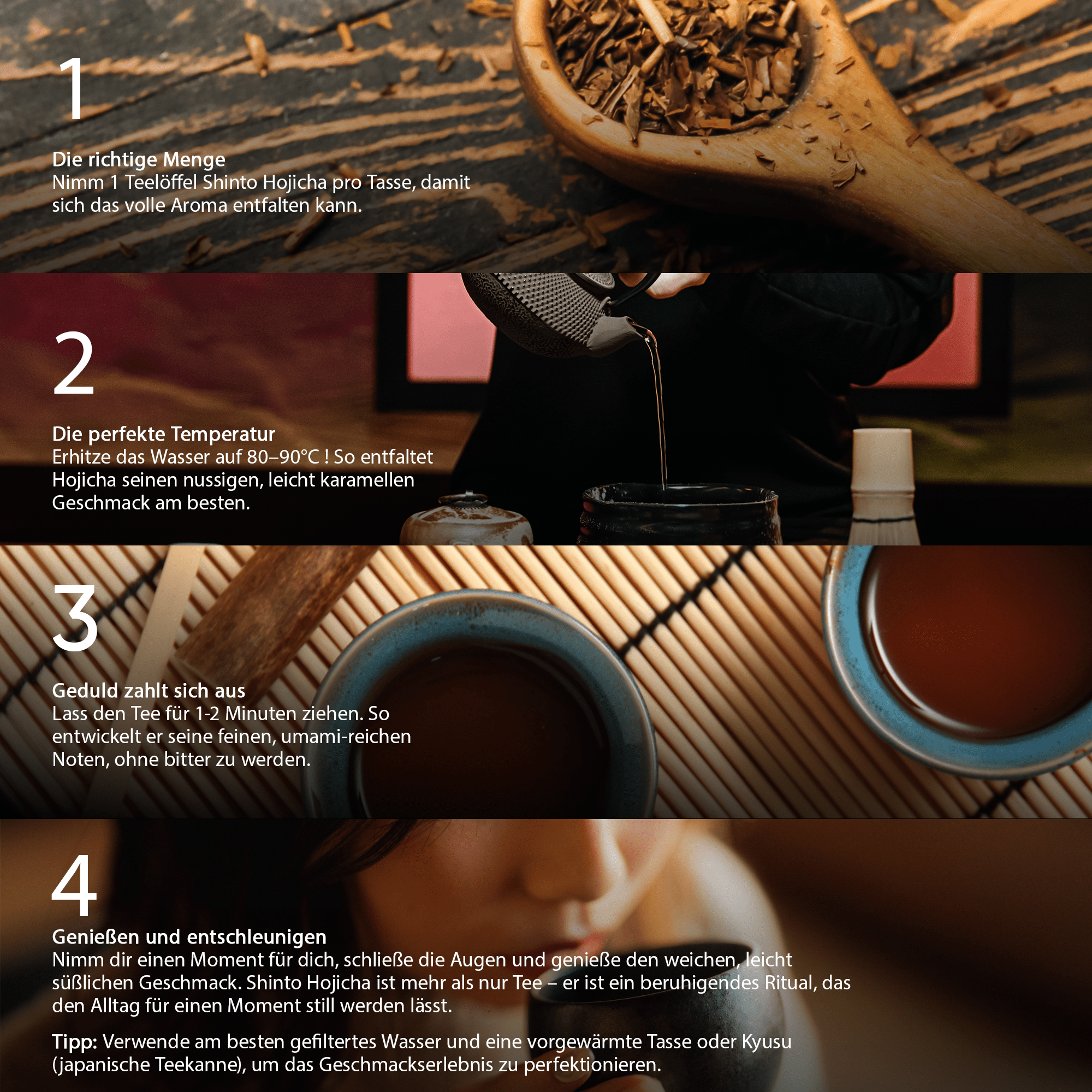 Sie mit Shinto BIO Hojicha die sanfte, aromatische Welt des japanischen